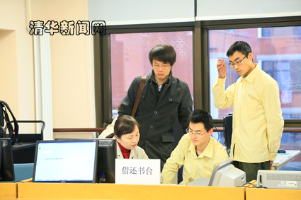 图为金融图书馆迎来第一位读者。孟新民 摄